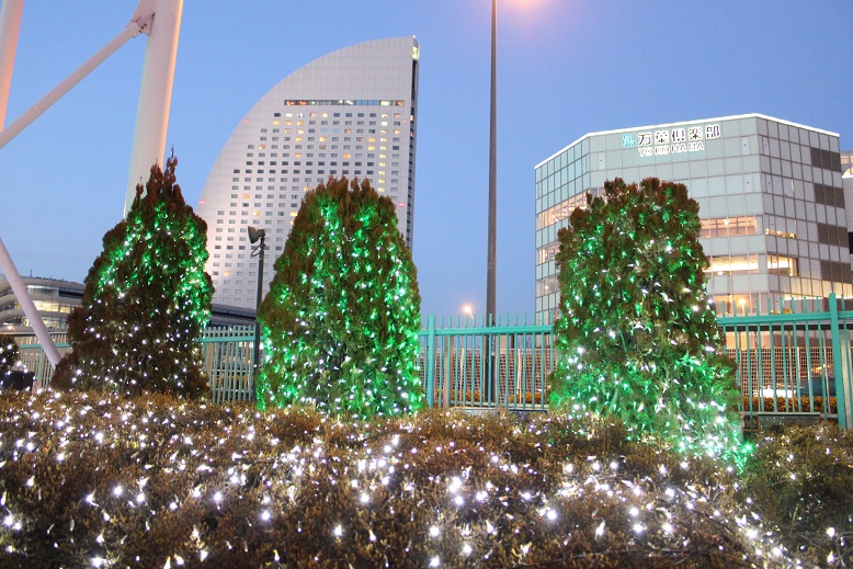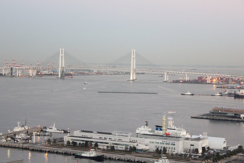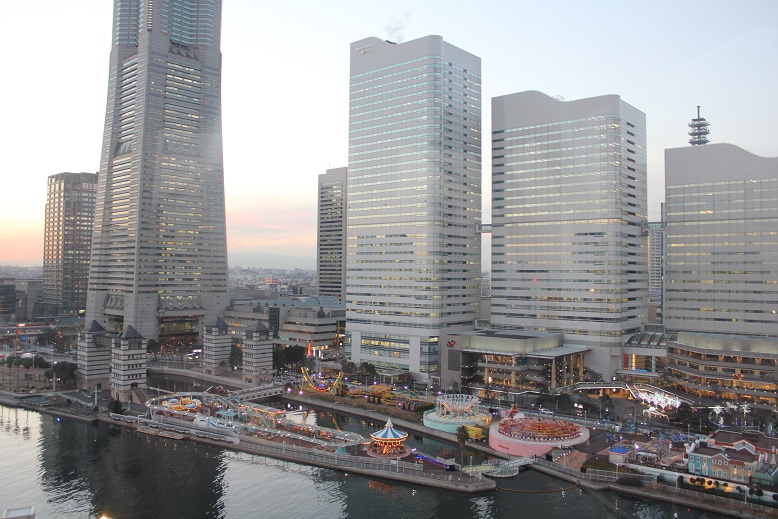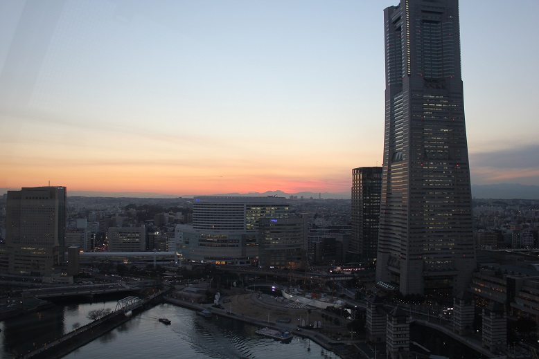 夕焼けをバックにランドマークタワー。哀愁があってとても綺麗でした。