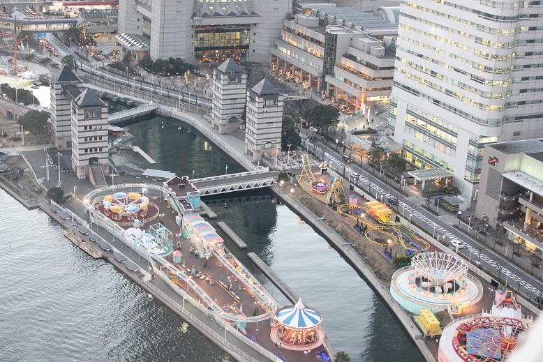 2014年1月20日カップヌードルミュージアムを楽しんだあと、「せっかくだから観覧車に乗って行こうよ」ということで、交差点を渡ってコスモワールドへ。