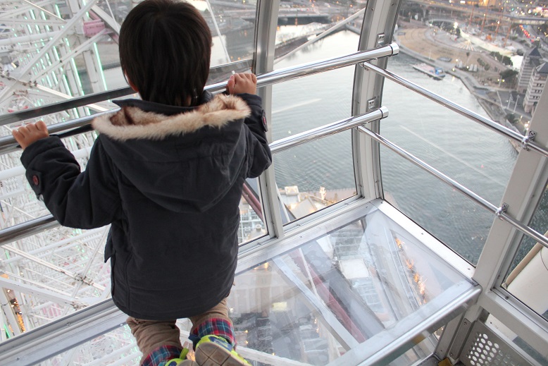 シースルーゴンドラの中の様子。3歳の息子も興奮!