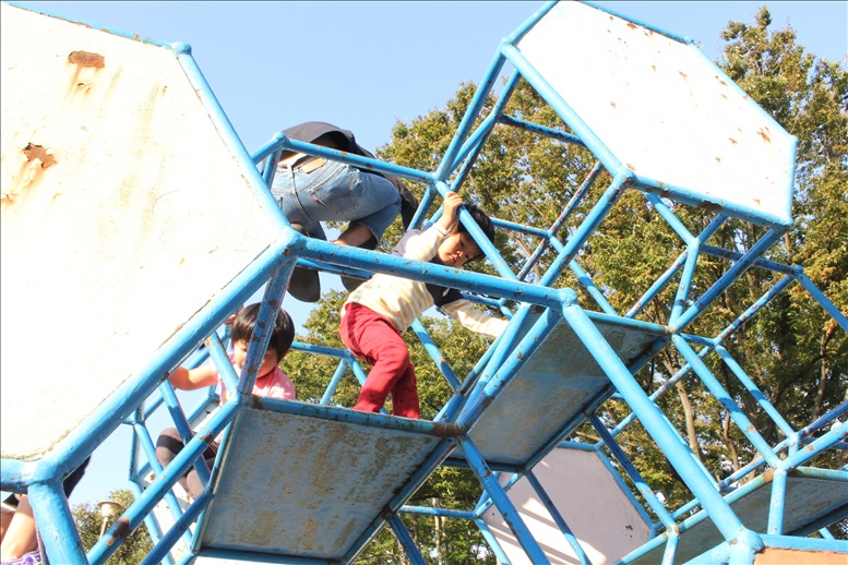 めずらしい形をしたジャングルジムも人気の遊具です。