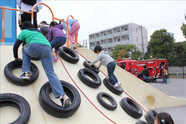 このワイドなジャンボすべり台は結構スピードが出て、みんな「キャー」と声を出して滑ってました。