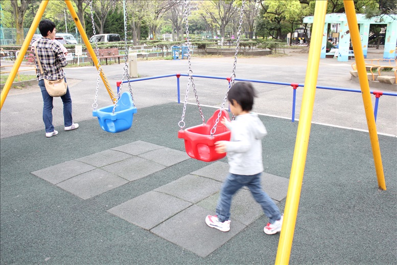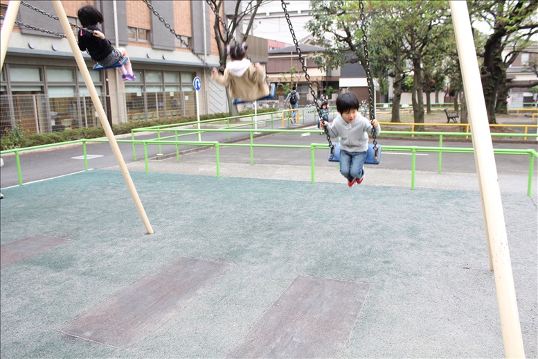カゴ付きブランコやミニ複合遊具が設置されています。