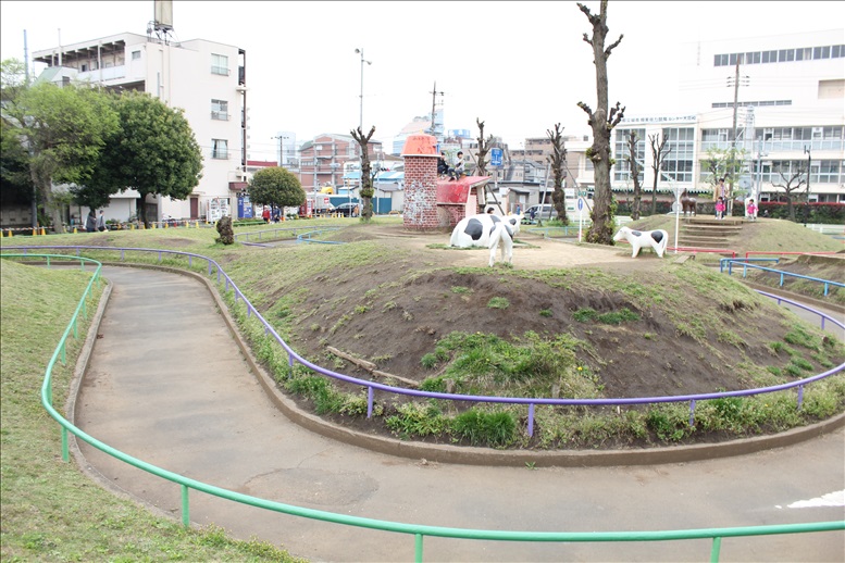 交通公園のエリアには、他の公園には無い完全オリジナルな大型遊具があります。