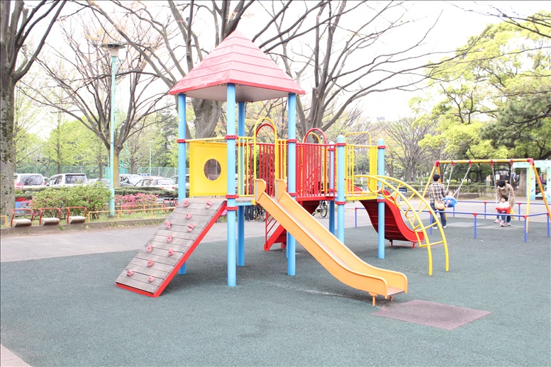 萩中公園には自転車やゴーカートが楽しめる交通公園、オリジナリティ溢れる大型遊具のある広場、水遊び場、屋外・屋内プールのある大きな総合公園です。