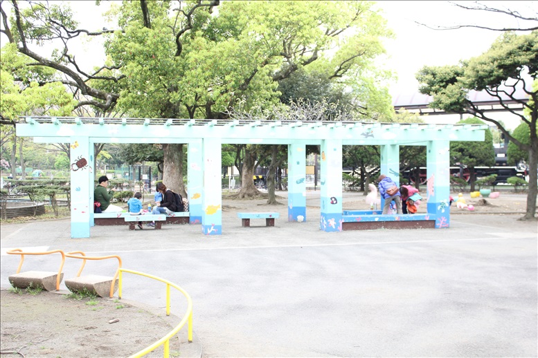 この日はお弁当を持って行かなかったので公園近くのコンビニでご飯を買ってこの休憩所でランチタイム。