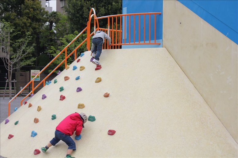 中央には山の形をした立派な大型遊具が設置されており、子供達にすごく人気です。