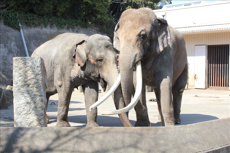 大きな牙のゾウと牙の無いゾウが