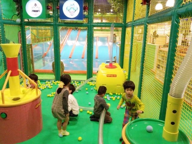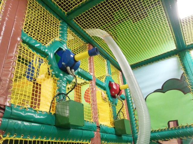 ボールを入れると上からボールが飛び出す装置や、ボールを吸い取る掃除機の様な装置、空気圧でボールを飛ばすエアバズーカーなど、ちょっと変わった遊具がありました。