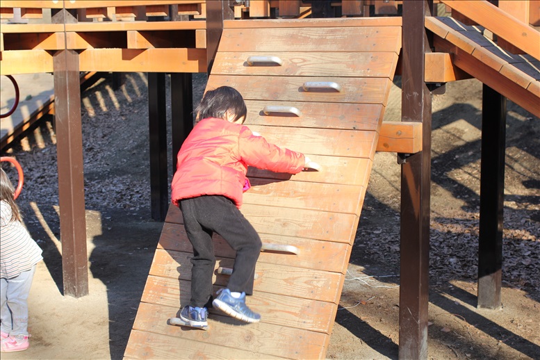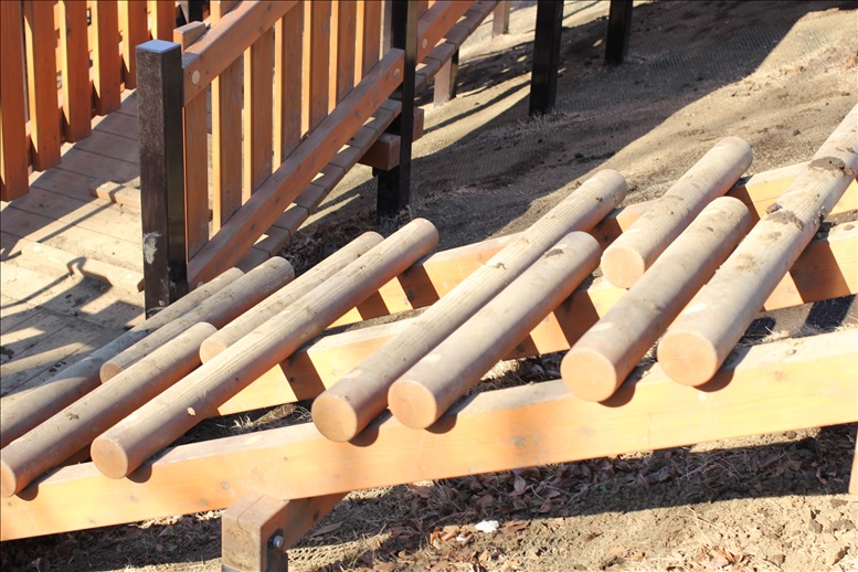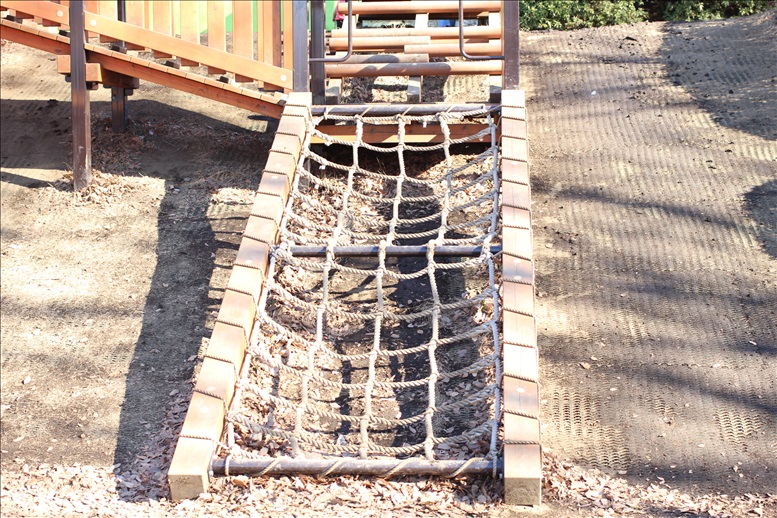 小さな小山に沿って砦みたいに作られていて、色々なアスレチック要素が盛り込まれています。