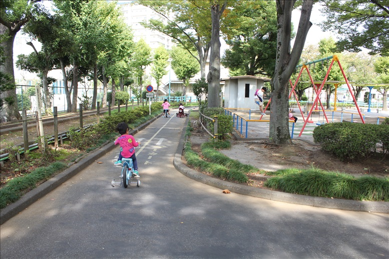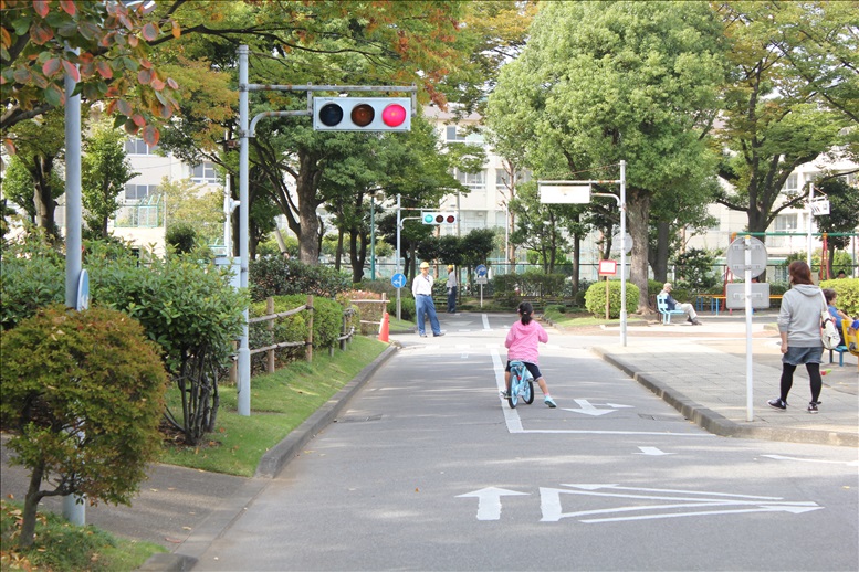 公園とはいえ、公園内では徒歩で移動する場合もしっかり交通ルールを守らないといけません。もちろん親もですね。信号無視はいけませんよ~。