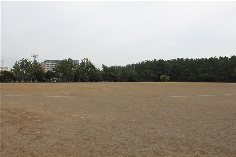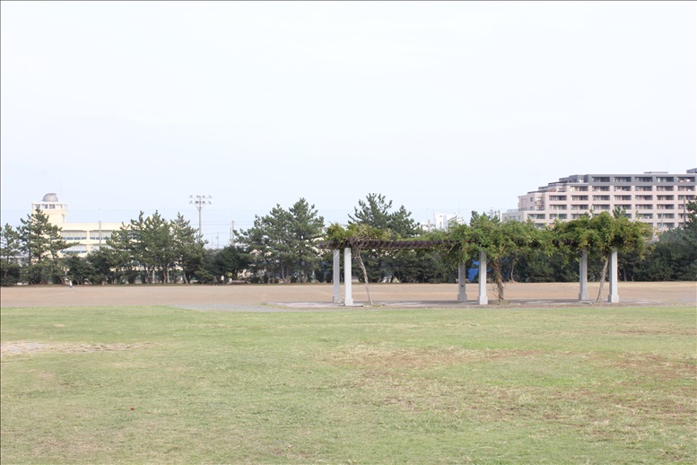 防風林の松に囲まれた湘南平塚公園はには、すごく広い芝生の広場、子供が遊べる遊具広場、フットサル場、プール、野球グランドがあります。