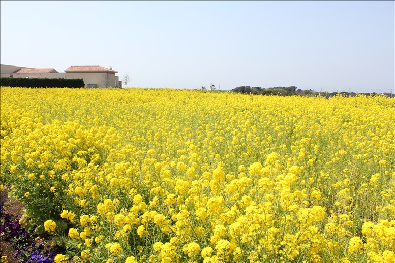 この時期は菜の花でいっぱいになっていて、ミツバチたちがお花の周りを飛び回ってました。