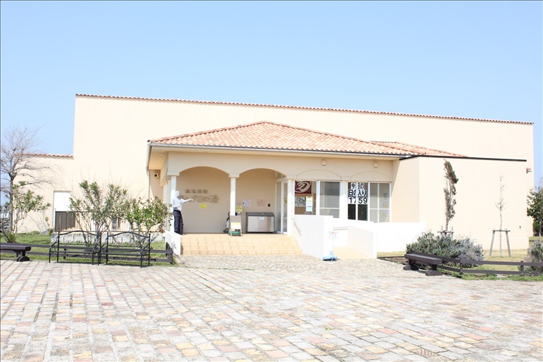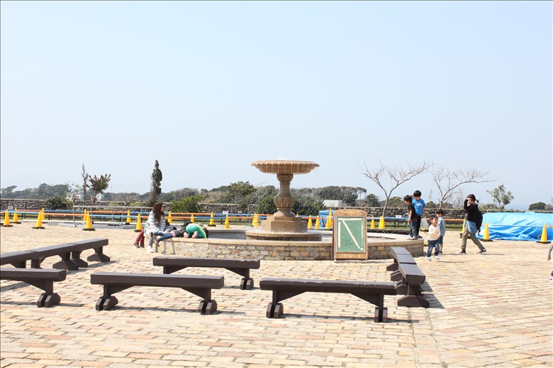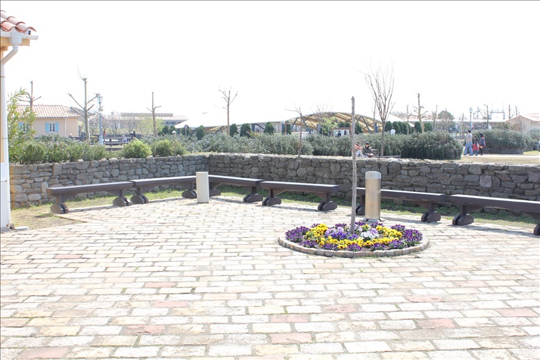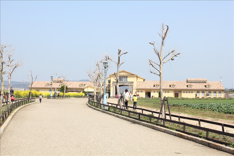 入り口お花畑の先にあるレストランや売店、温泉などがある広場です。