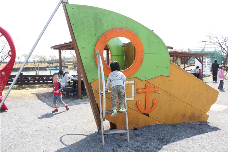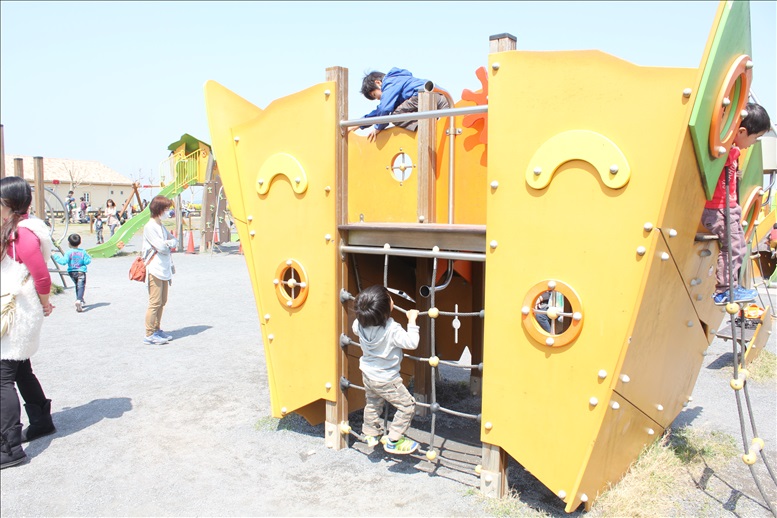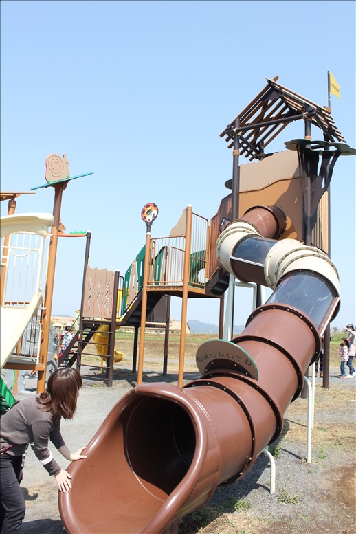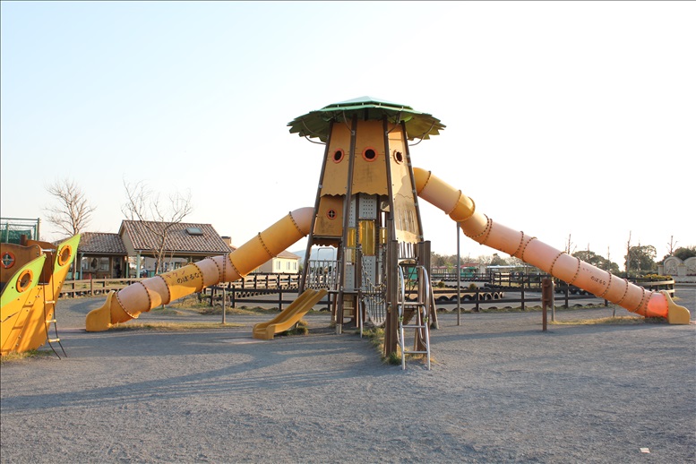 とにかくユニークな大型の複合遊具がたくさんあります。
