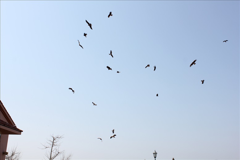 公園の上空に「ピ~ヒョロロロ」とトビがたくさん飛んでいます。