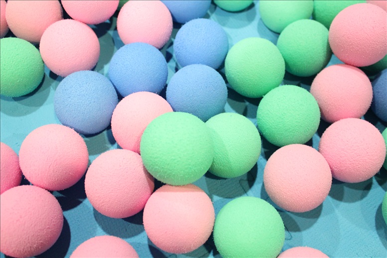 ここにあるボールは、スポンジ素材でやわらかいです。
