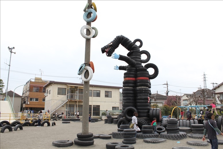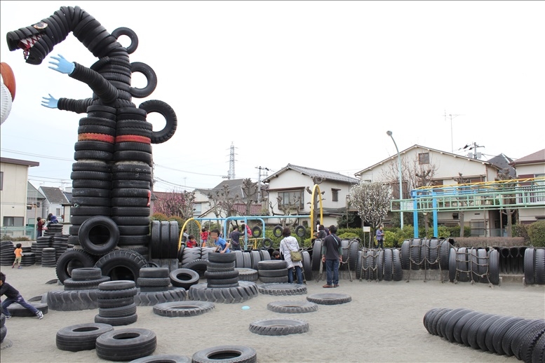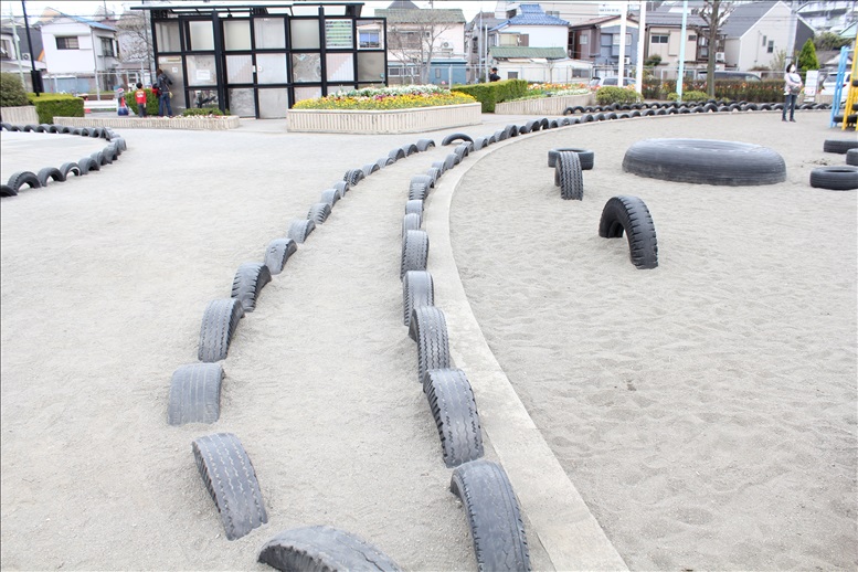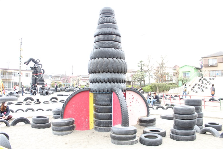 タイヤで作られた遊具がたくさんある、とことんタイヤにこだわったタイヤだらけの『タイヤ公園』へ行ってきました。