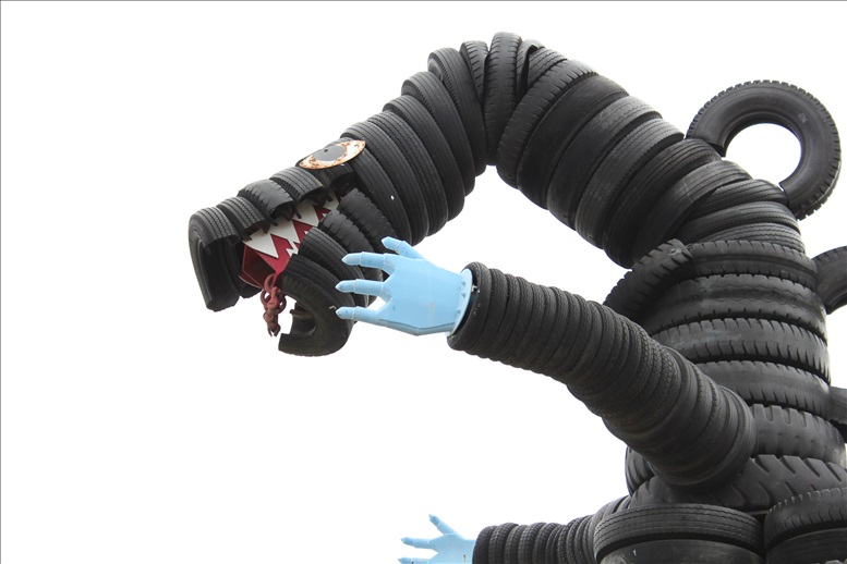 この大きなタイヤ怪獣を見るとどこかのテーマパークに来た様な気分になります。
