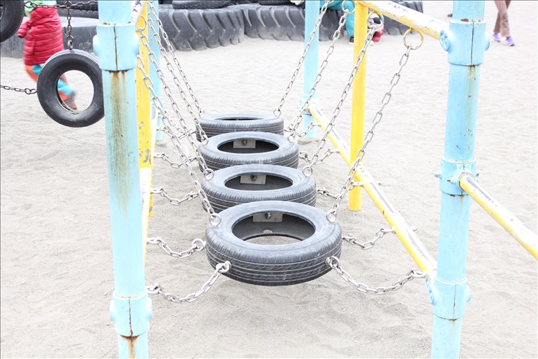 ものすごくデカイタイヤが鎖で吊り下げられている遊具。