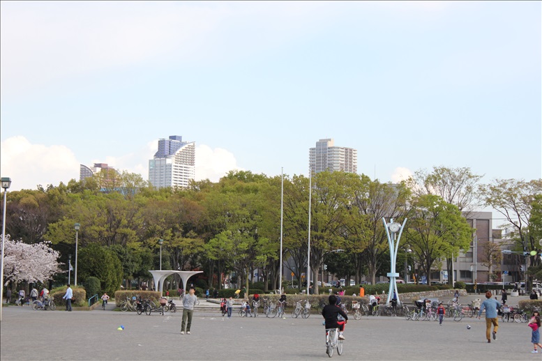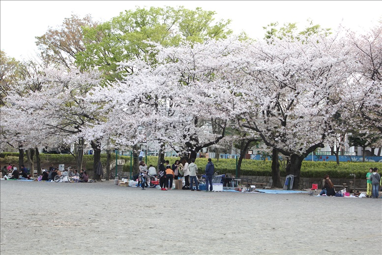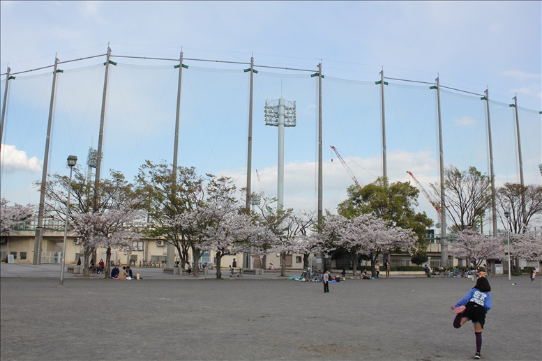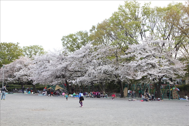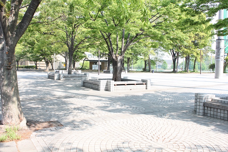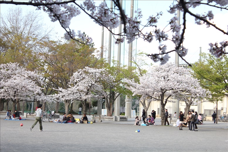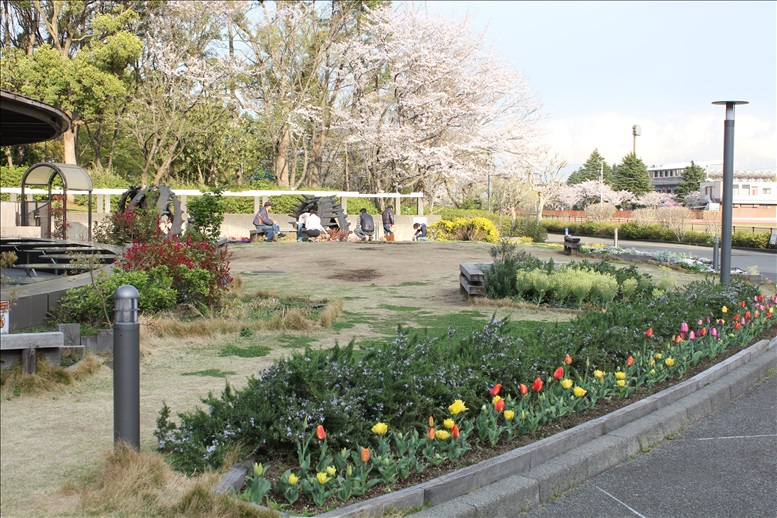 催し物広場のグランドの周りには桜並木があり、シーズン中は花見に多くの人が訪れます。