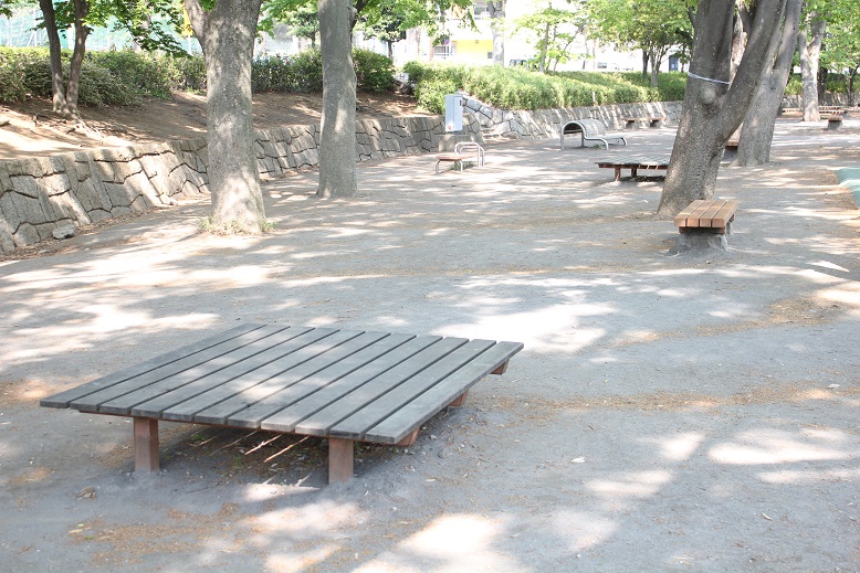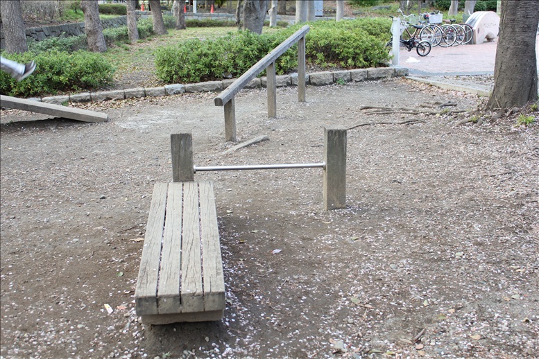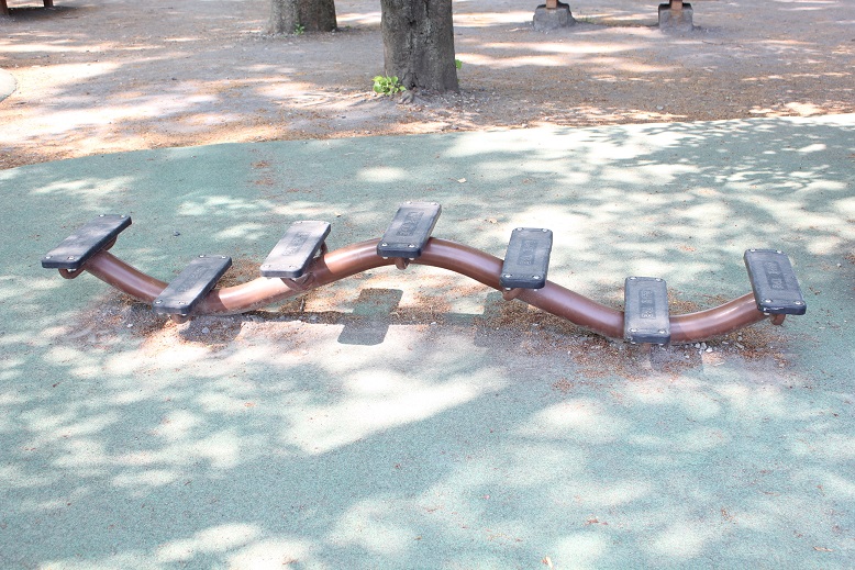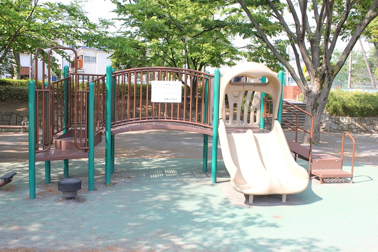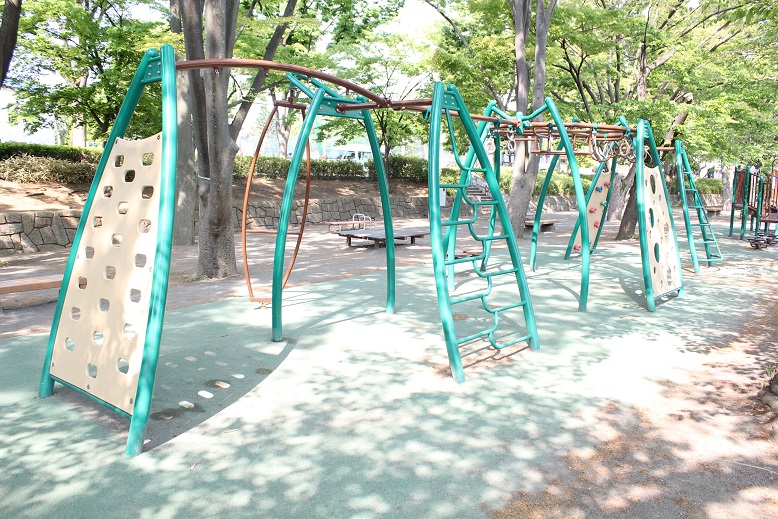 大きなグランドと遊具施設、健康ストレッチ器具があります。