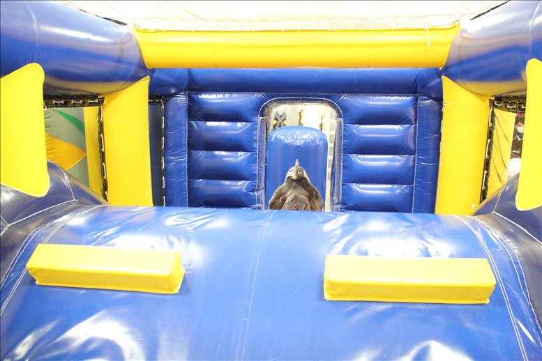 入口入ってすぐにフワフワ遊具が一番奥のウルトラステージまで2列並んでます。