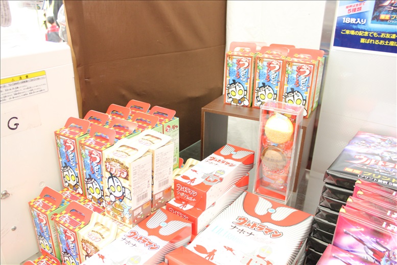 ウルトラまんじゅう、せんべい、クッキーなどのお土産コーナー