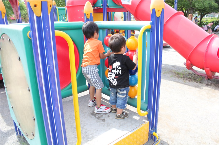 大型の複合遊具が2基設置されていて、小さい幼児向けの複合遊具もあります。