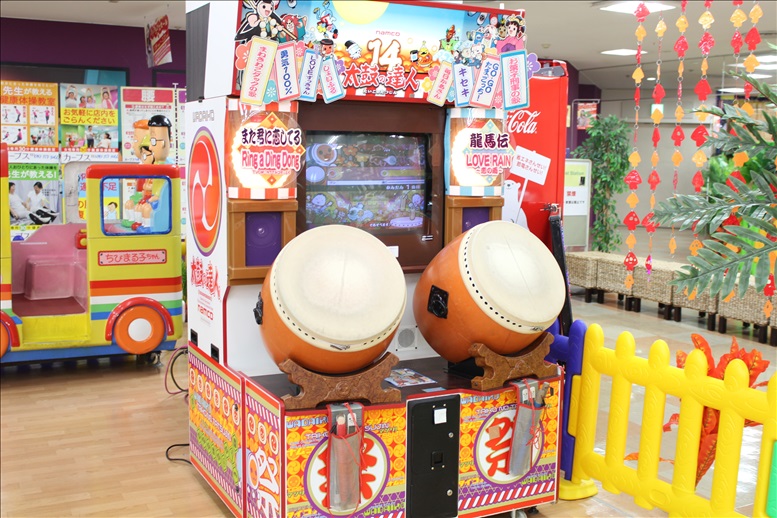 ゲームセンターの定番とも言える太鼓の達人などのゲームが設置されています。