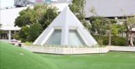 岡本太郎の太陽の搭が中心にある噴水広場。一見水遊びができそうですができません。